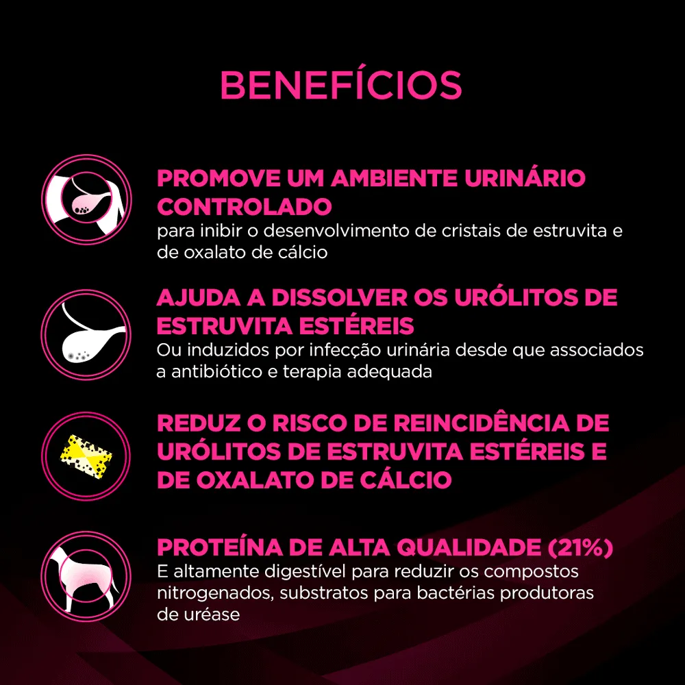 Alimento coadjuvante seco para cães adultos, indicado para dissolução de urólitos de estruvita estéreis e na redução do risco de formação de cristais ou urólitos de estruvita estéreis e de oxalato de cálcio