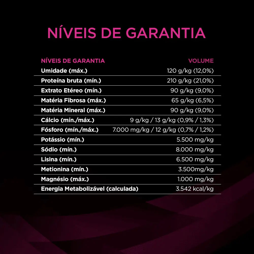 Energia Metabolizável (calculada): 3.542 kcal/kg